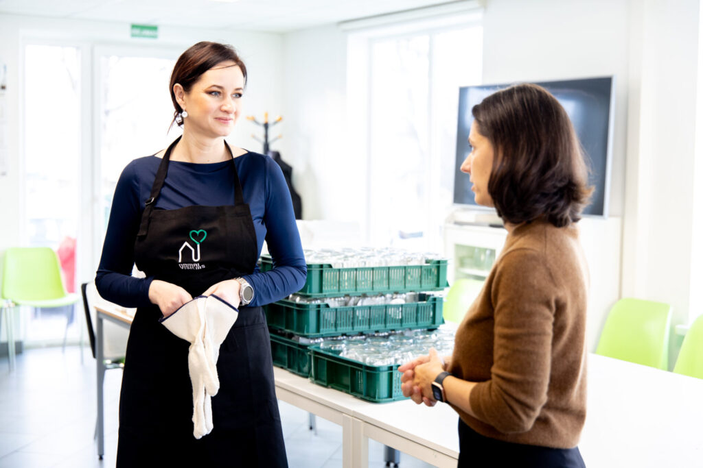 Vizito metu Inga Ruginienė bendravo su „Namai visiems“ lankytojais ir senjorais, domėjosi jų kasdienybe, išklausė patirtis bei aktyviai įsitraukė į savanoriškas veiklas. Taip pat aptartos galimybės stiprinti valstybės institucijų ir nevyriausybinių organizacijų bendradarbiavimą, siekiant užtikrinti socialinių paslaugų tęstinumą ir kokybę regionuose.